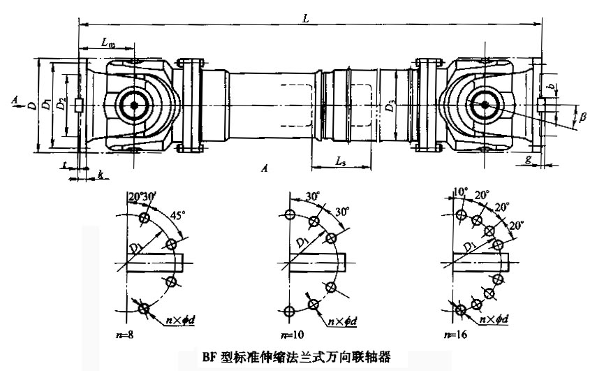 BF型十字軸式萬向聯軸器基本參數和主要尺寸 (JB/T 5513-91) mm |